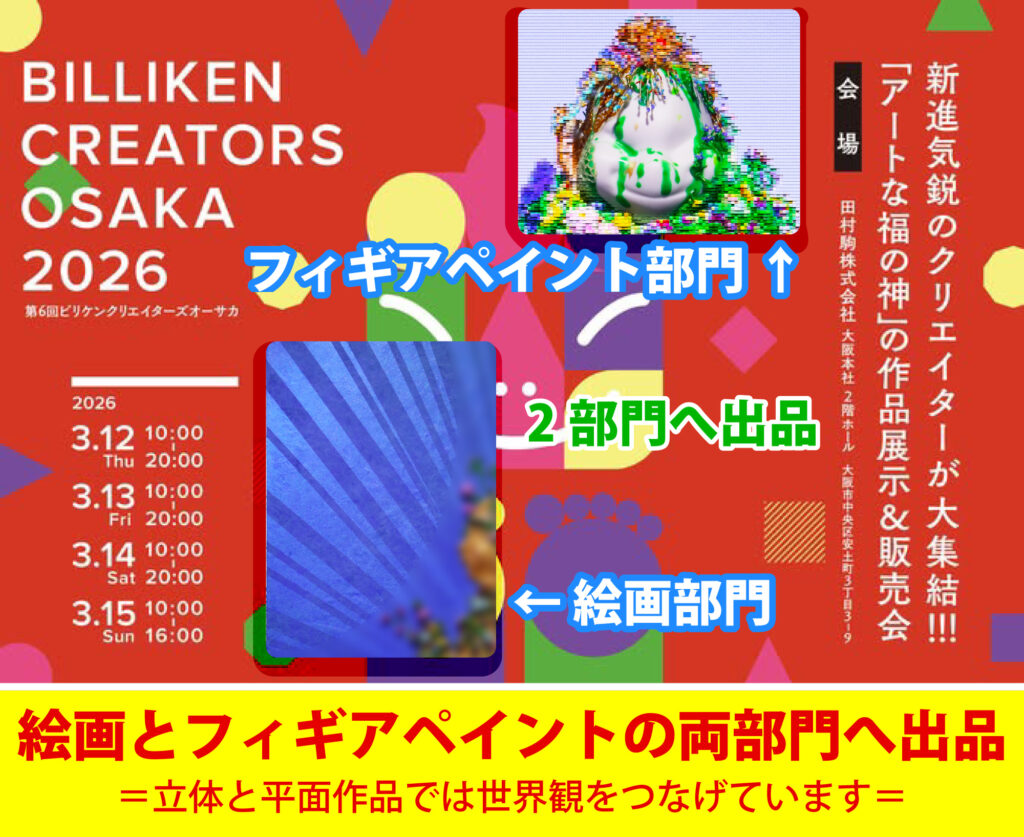 #Art #ContemporaryArt #Osaka #Biliken #Exhibition #BILLIKENCREATORSOSAKA #ビリケン #ビリケンさん #JapaneseArt #ArtFestival #GalleryExhibition #AcrylicPainting #FigurePainting #Semi3DArt #半立体色彩画 #MixedMediaArt #CharacterArt #PopArtJapan #OsakaArtScene #ArtEvent2026 #OriginalArtwork #HandmadeArt #HumanMadeArt #ArtCollectors #インテリアアート #現代アート好きな人と繋がりたい